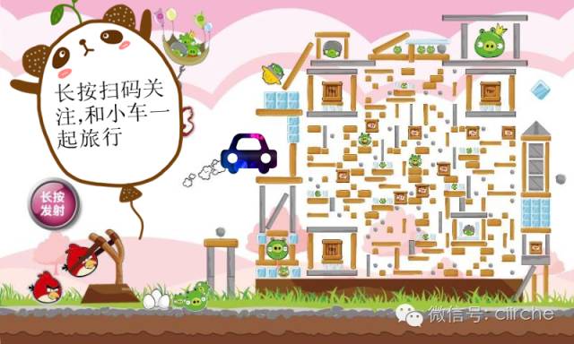 二维码被怪绿猪隐藏了,长按发射愤怒的小车,即刻拯救二维码!解锁第一手旅游攻略!