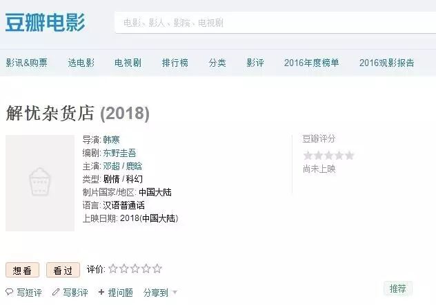 早在2015年10月底,英皇电影与万达电影就宣布获得了《解忧杂货店》的中文版电影和电视版权,预计电影在今年开拍,明年上映。两家公司当时还表示很快就会公布主创名单。但后来该片并无名单放出,直至这次电影局公布立项名单,才有了新动向。