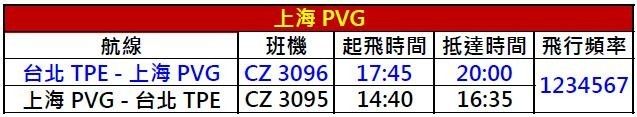 南方航空 台北直飛上海 每天一班!!