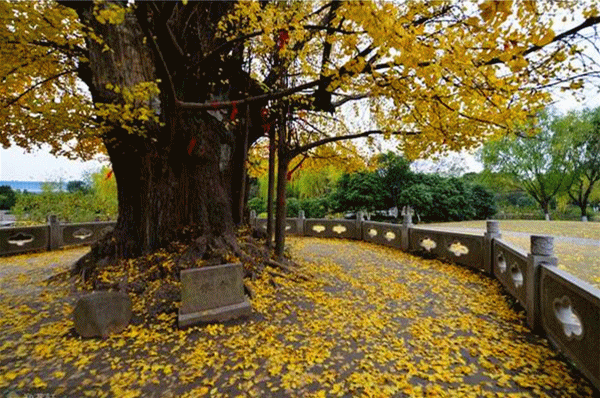 满地金黄的古树公园,