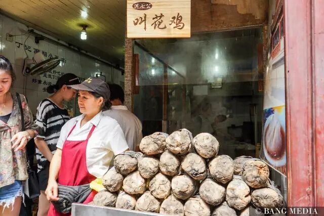 你以为是烘山芋对吗...我觉得也像!哈哈哈哈,但其实是外表裸着厚厚一层泥的叫花鸡,里面用荷叶包着的。叫花鸡的鸡肉特别香,都是烤出来的,还带有荷叶的香气,感觉一整只吃完都不会腻呢!喜欢吃鸡的一定要吃吃看啊!