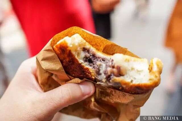 甜蜜蜜~它真的甜蜜蜜~里面是红豆沙馅的,表面还抹了一层糖浆~虽然很好吃,但我觉得必须要备一瓶水,不然真好腻啊!!!!!可以两个人分一个,一人一个太多了后面会吃不下...
